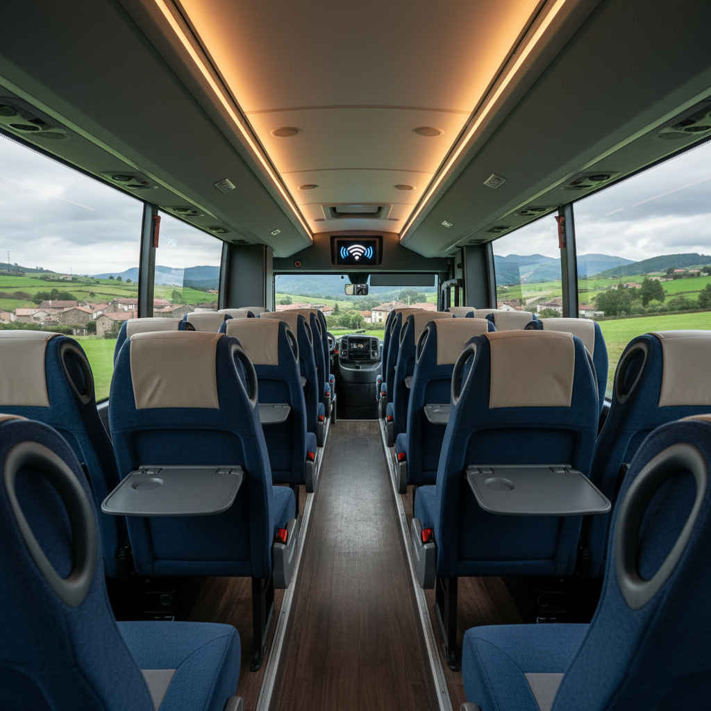 Toda nuestra flota está equipada con los últimos avances tecnológicos (ABS, ESP) y comodidades (Wi-Fi, USB bajo petición) para ofrecer un viaje seguro y cómodo.